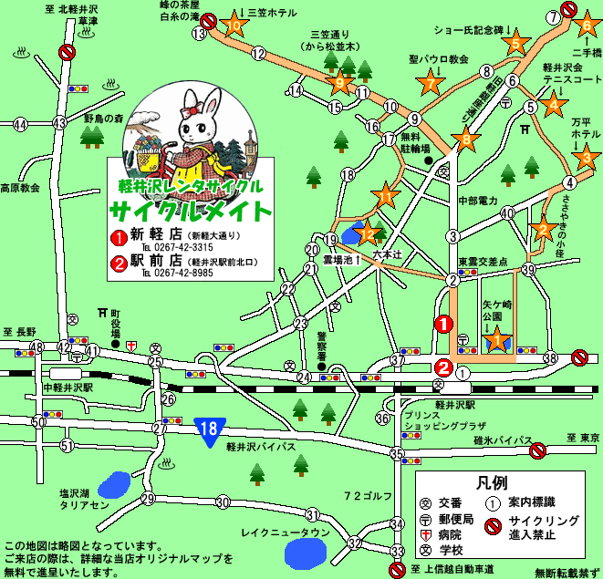 軽井沢駅を降りて北口、新軽井沢から旧軽井沢エリアを散策するコースです。